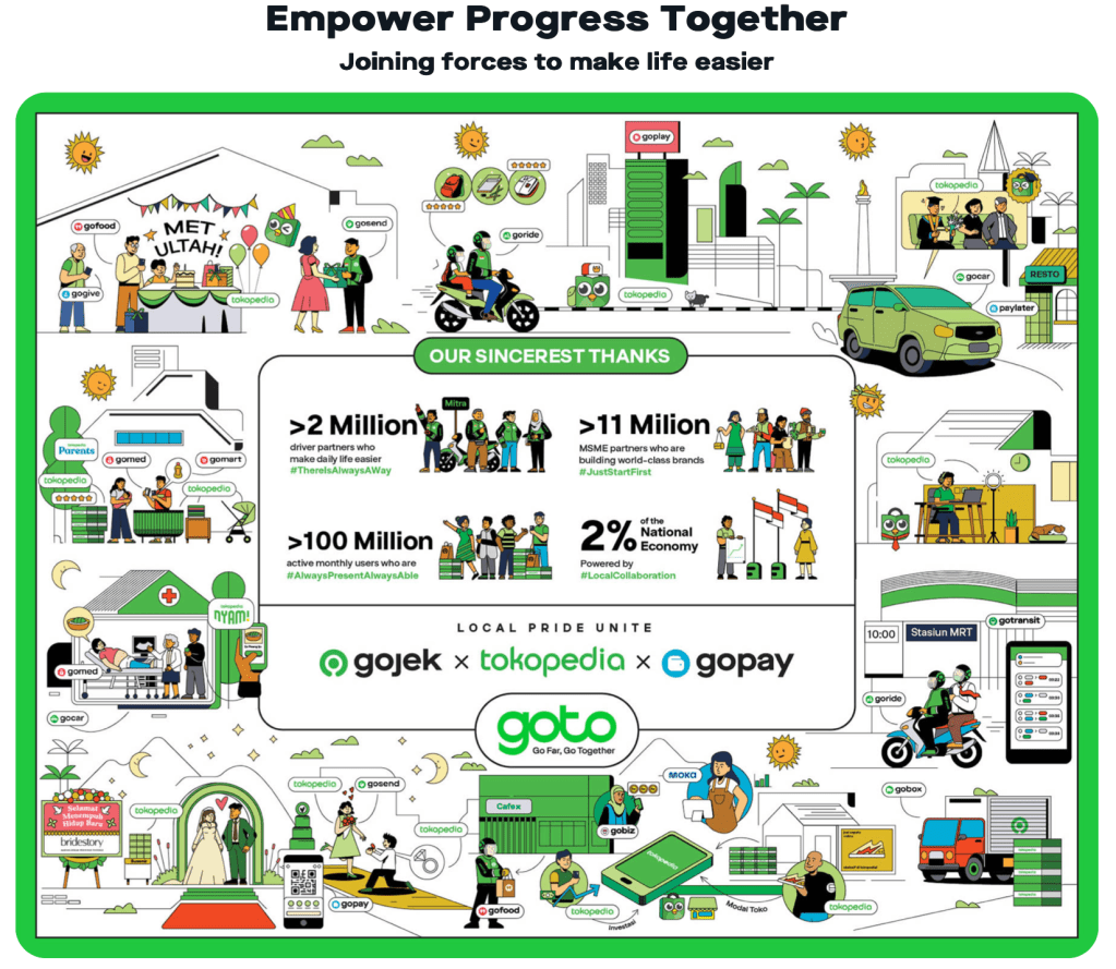 The combined entity is “a globally unique and highly complementary ecosystem,” the two firms said as they look to better compete with heavily funded super app Grab and e-commerce platform Shopee. GoTo executives claimed that the combined entity features: