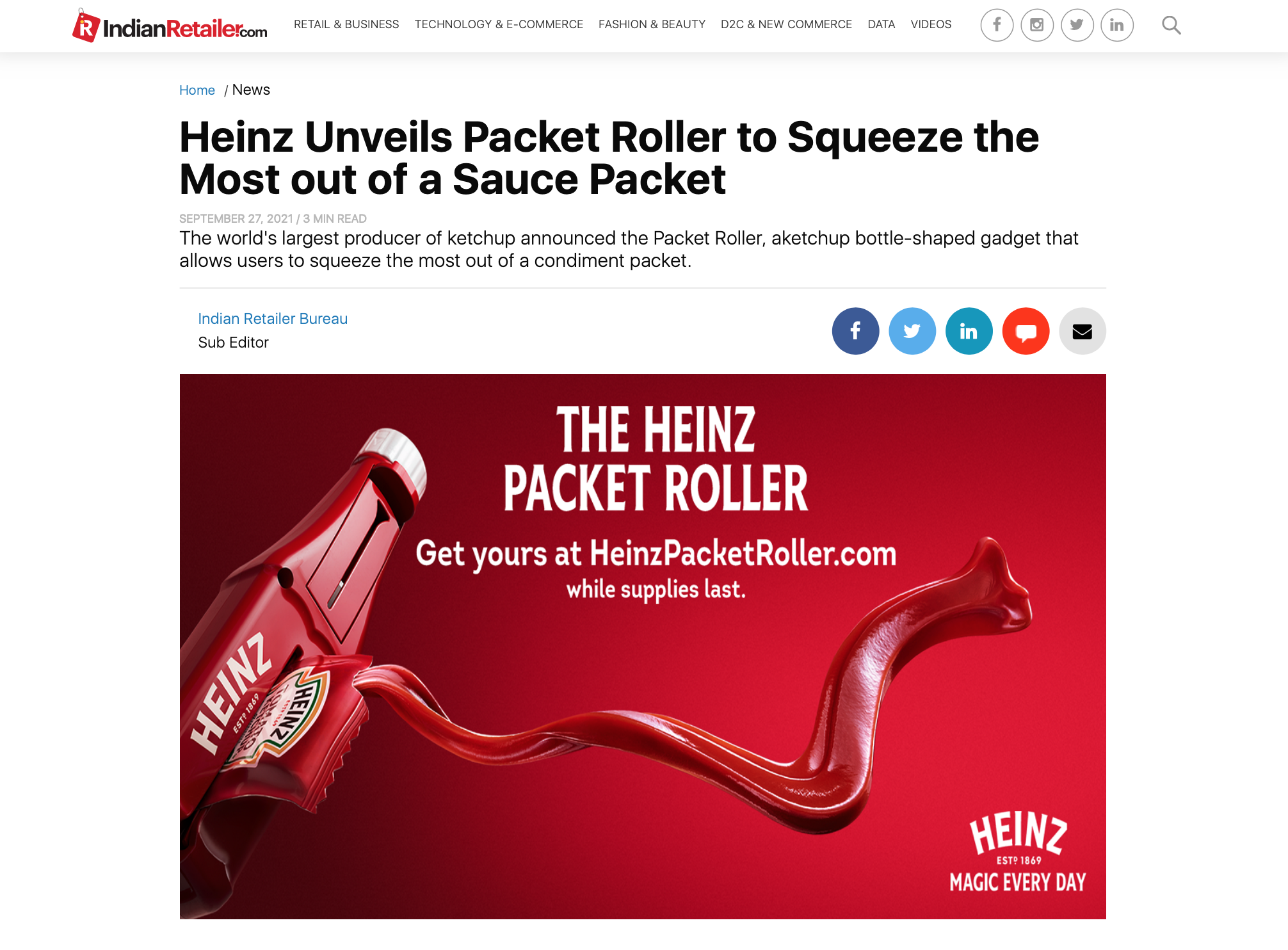 While watching the news on CNN just a few days ago, I saw a piece of news that we seldom see these days. It was a news story about a gadget that a leading FMCG (fast-moving consumer good) brand introduced, that is, the launch of the new Heinz Packet Roller.