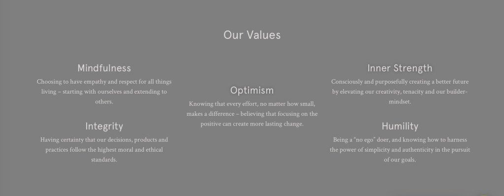 Its value of ‘Optimism‘ states: “Knowing that every effort, no matter how small, makes a difference – believing that focusing on the positive can create more lasting change.”